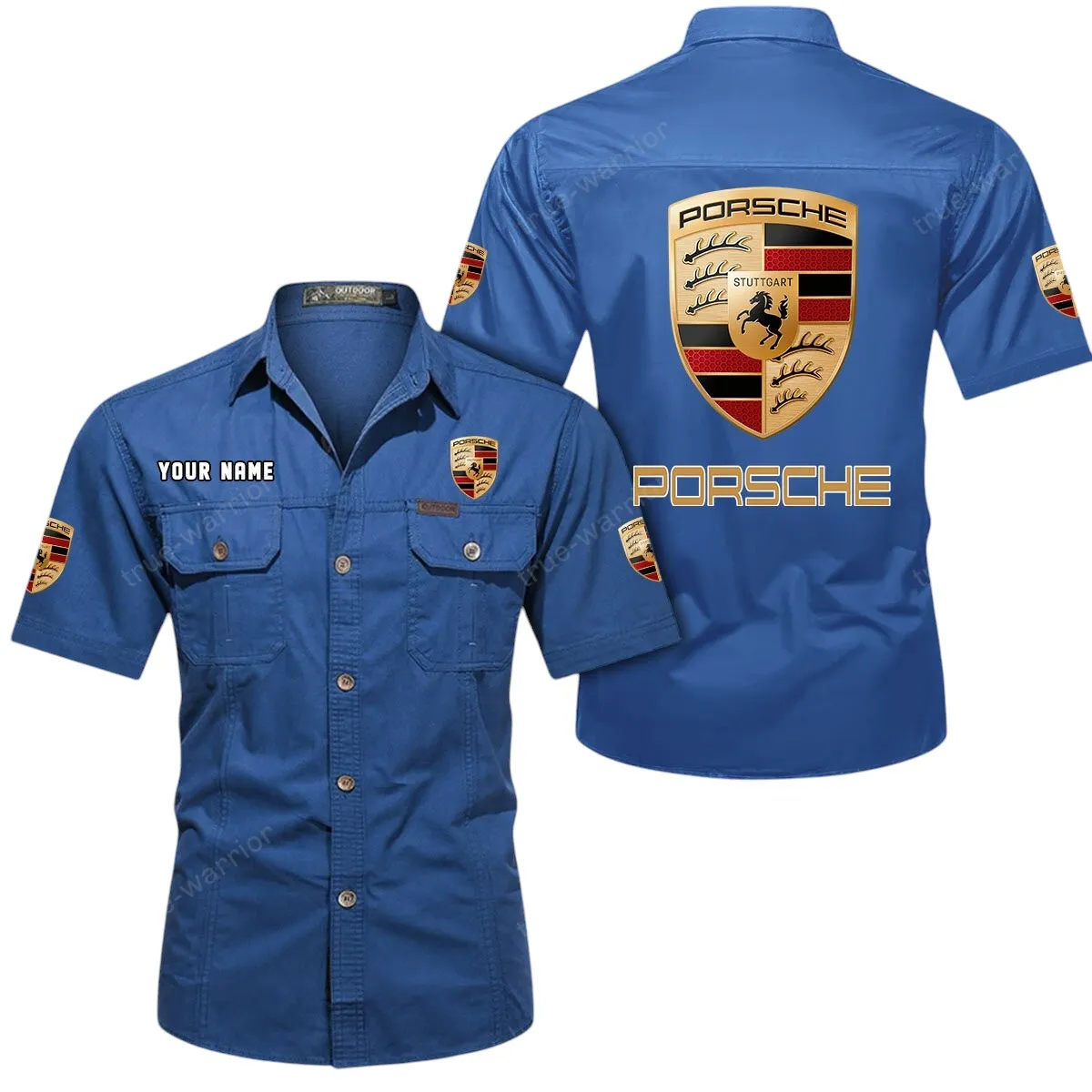 Porsche Short Sleeved Shirt, All Over Print Button Shirt CAR444052625813 – Cowboy Blue