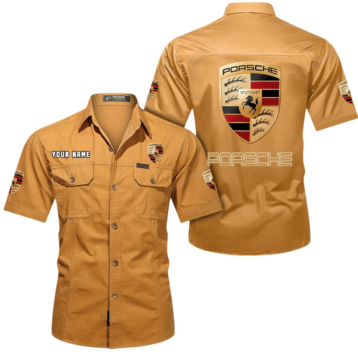 Porsche Short Sleeved Shirt, All Over Print Button Shirt CAR444052625813 - Khaki