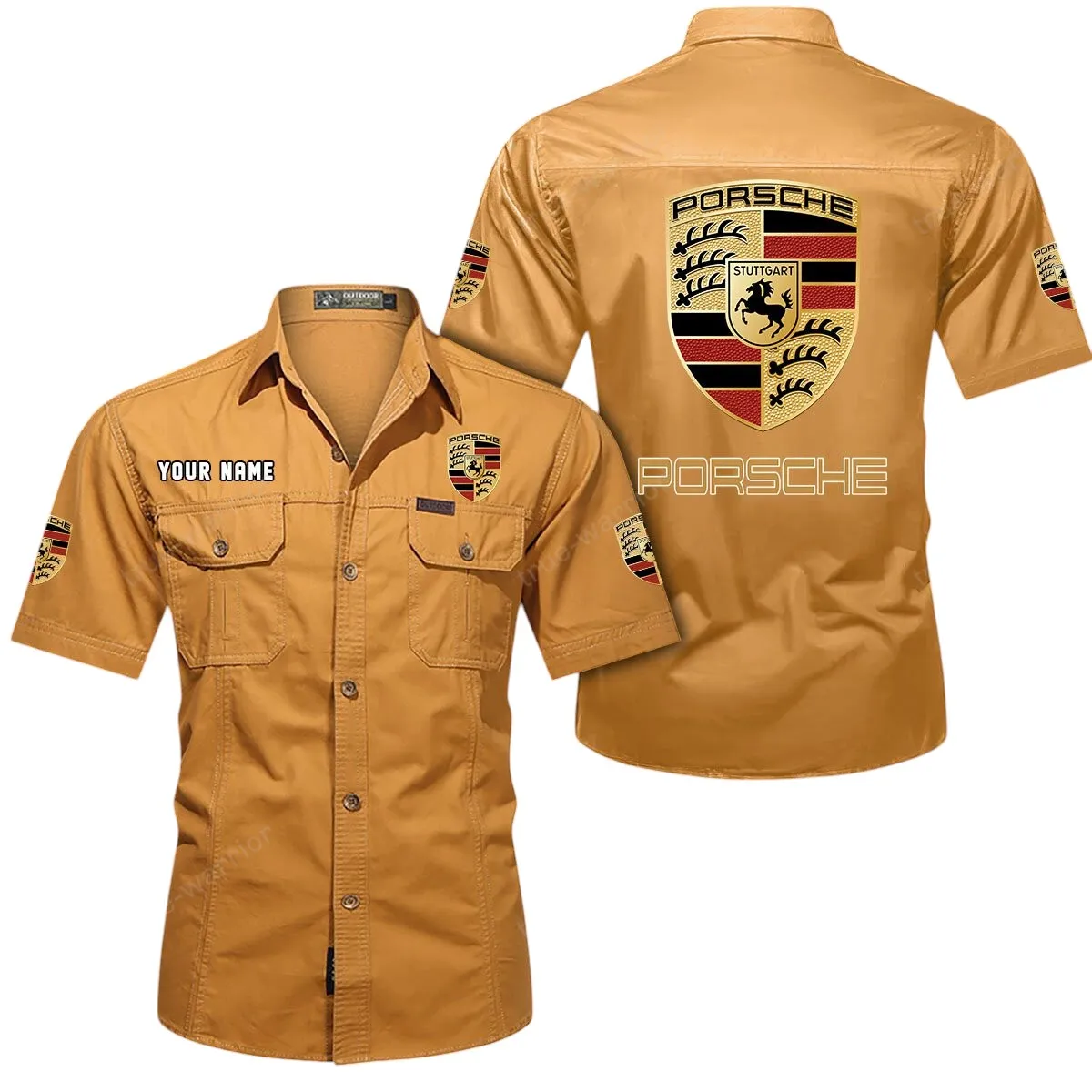 Porsche Short Sleeved Shirt, All Over Print Button Shirt CAR444052625823 - Khaki