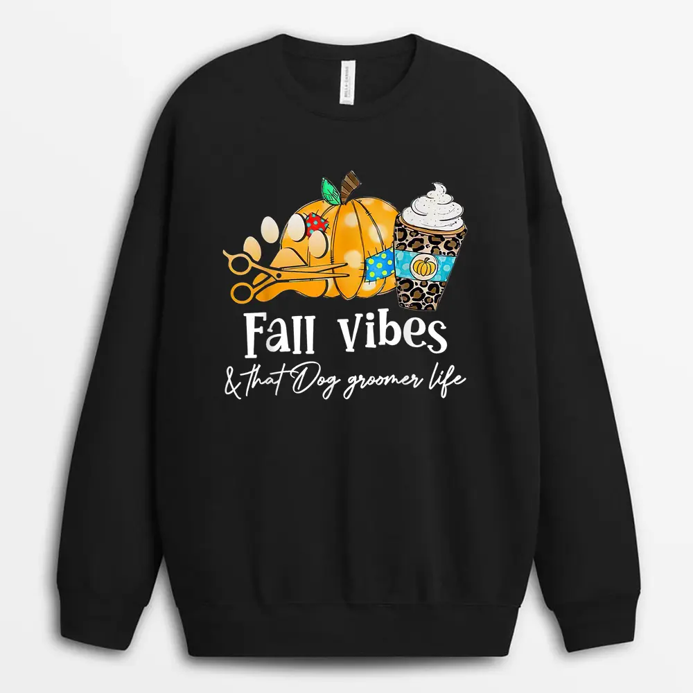 Pumpkin Lover Fall Vibes And That Dog Groomer Life Sweatshirt – Black