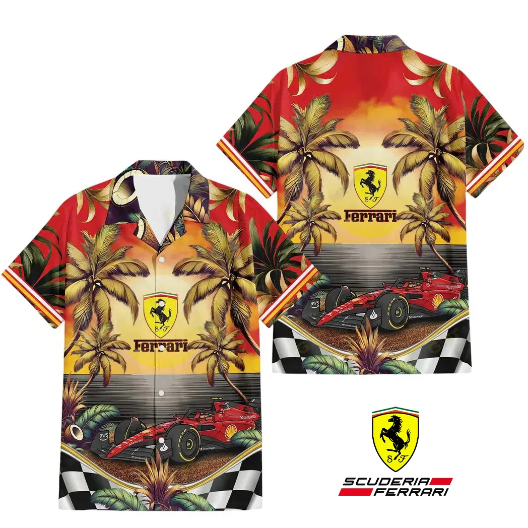 Performance-Inspired Hawaiian Shirt for Ferrari Fans – Lightweight, Breathable & Built for Garage Days or Cruise Nights