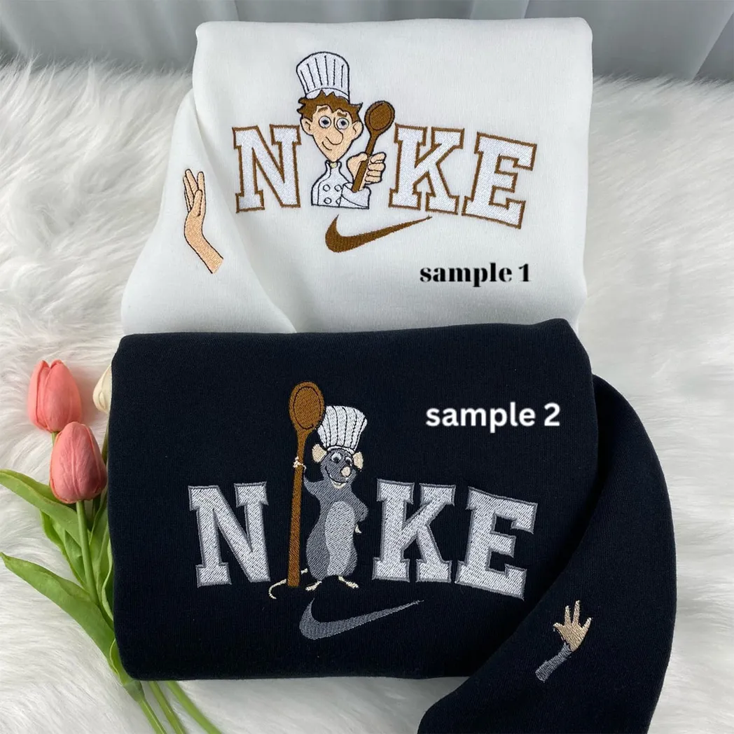 Ratatouille Movie Alfredo Linguini And Remy Mouse x Nike Embroidered Sweatshirt Fashion Style For Couples, Valentines Gift For Him/Her