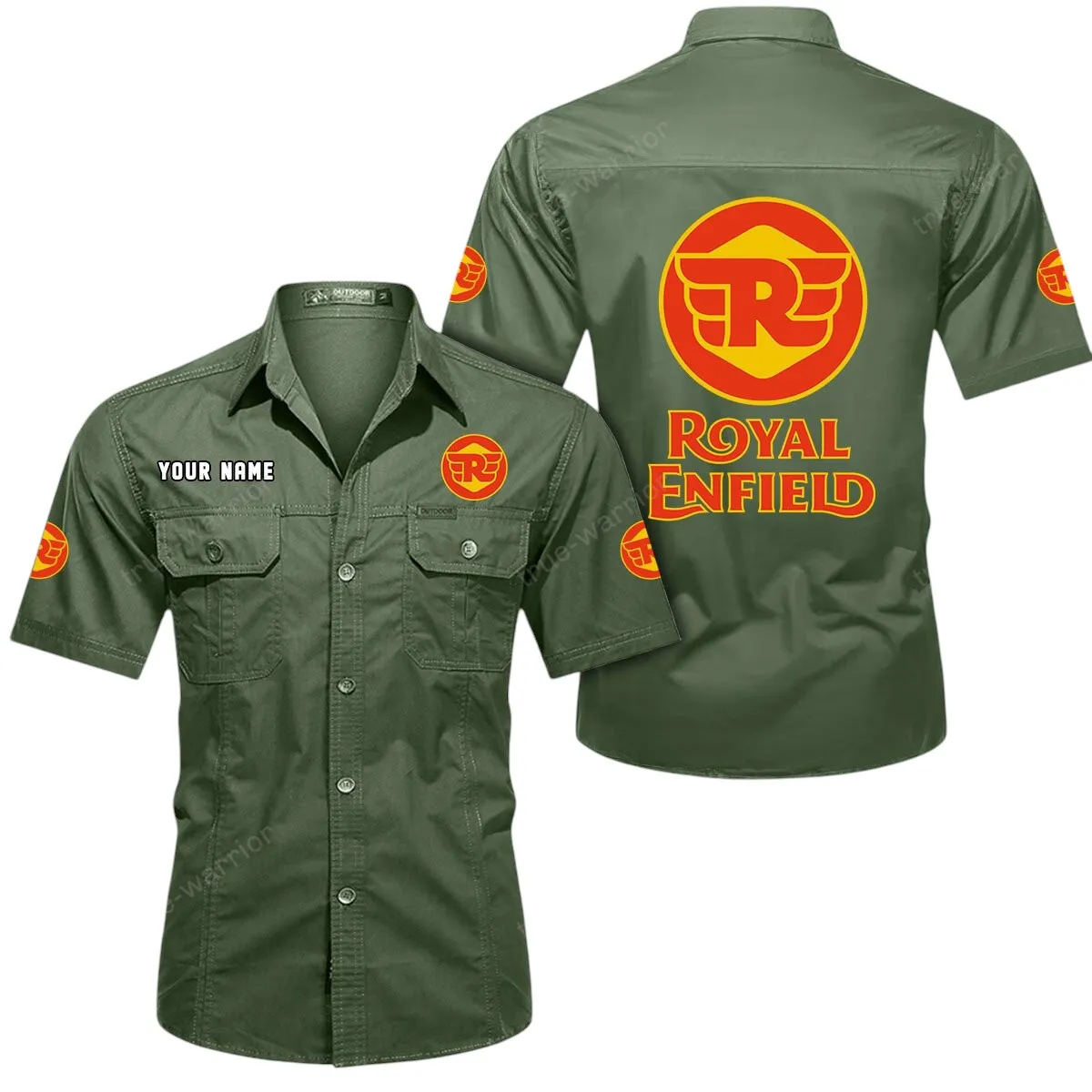Royal Enfield Short Sleeved Shirt, All Over Print Button Shirt CAR444052625825 – Army Green
