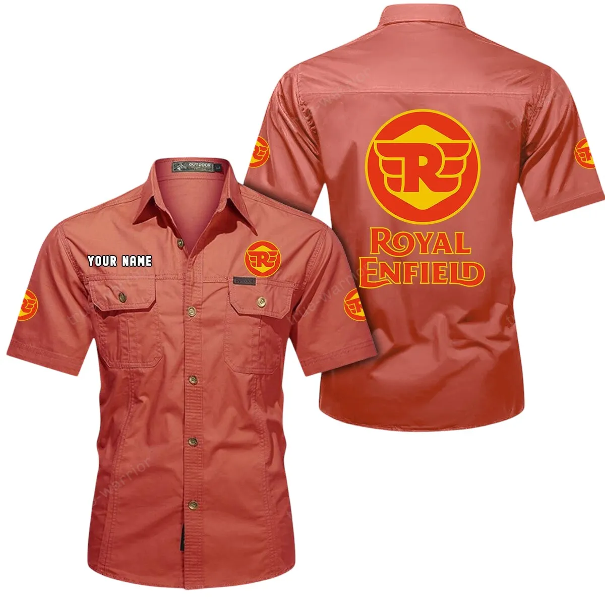 Royal Enfield Short Sleeved Shirt, All Over Print Button Shirt CAR444052625825 - Red