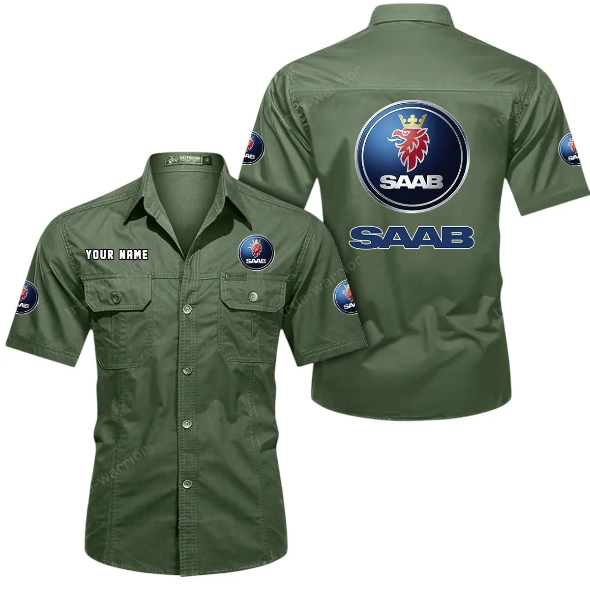 Saab Automobile Short Sleeved Shirt, All Over Print Button Shirt CAR444052625865 – Army Green
