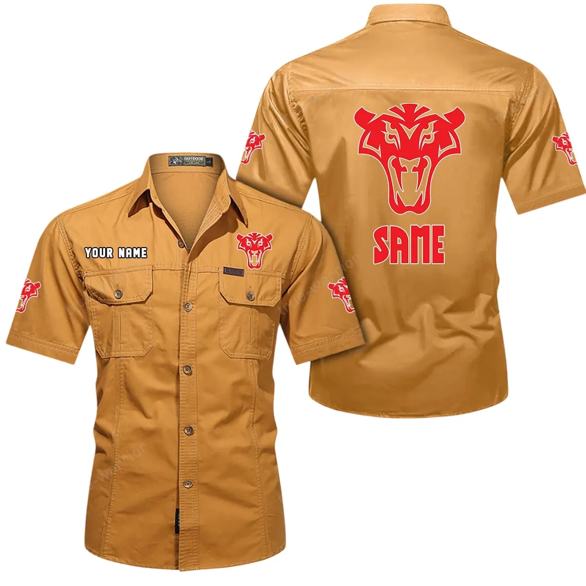 Same Short Sleeved Shirt, All Over Print Button Shirt CAR444052625882 - Khaki