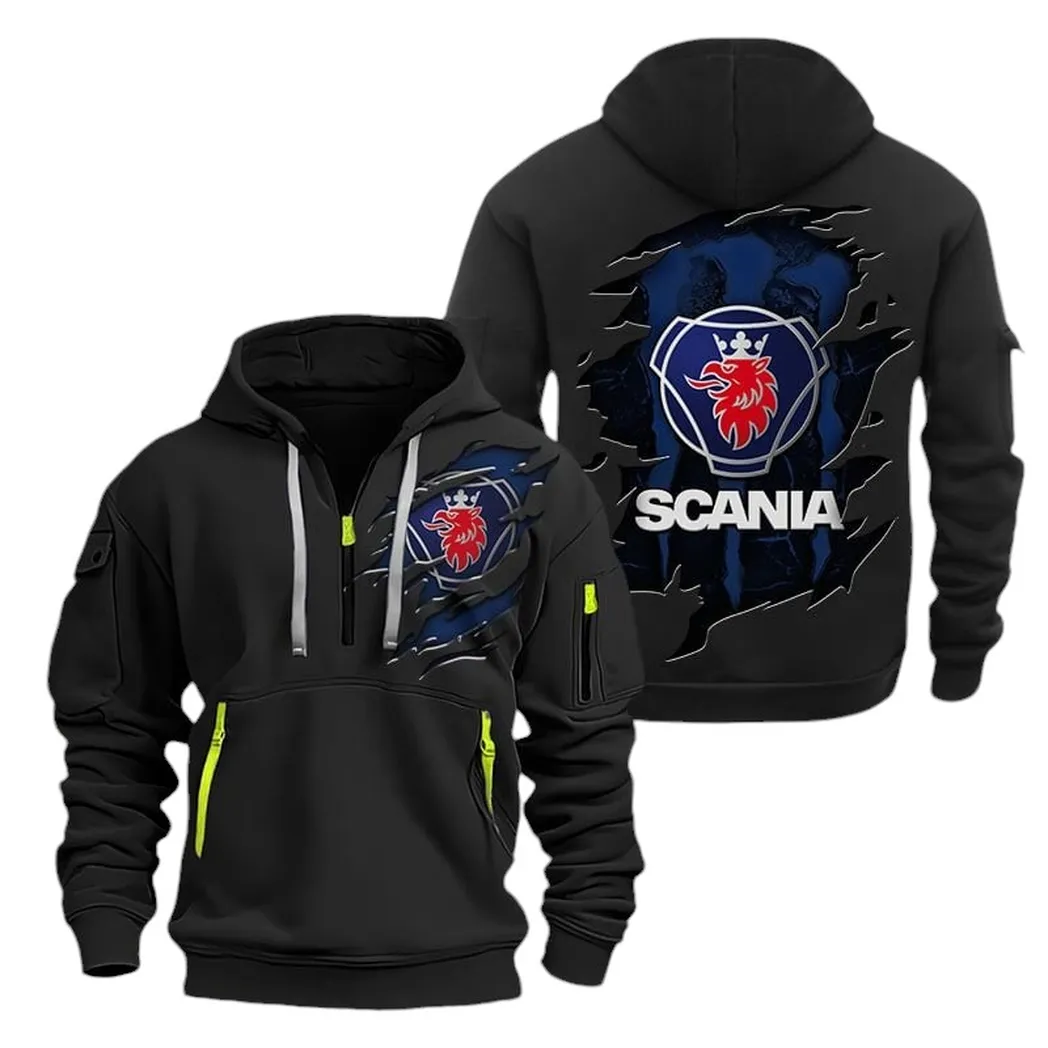 Scania Hoodie Half Zipper CAR1581052024, All Over Print Hoodie Half Zipper