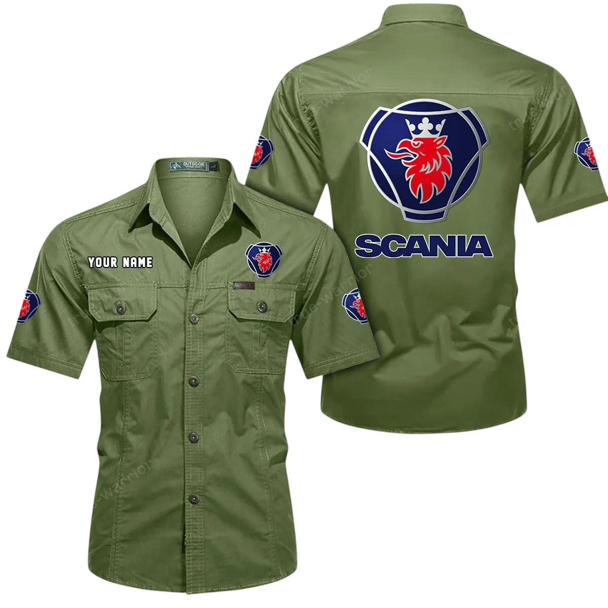 Scania Short Sleeved Shirt, All Over Print Button Shirt CAR444052625824 - Army Green