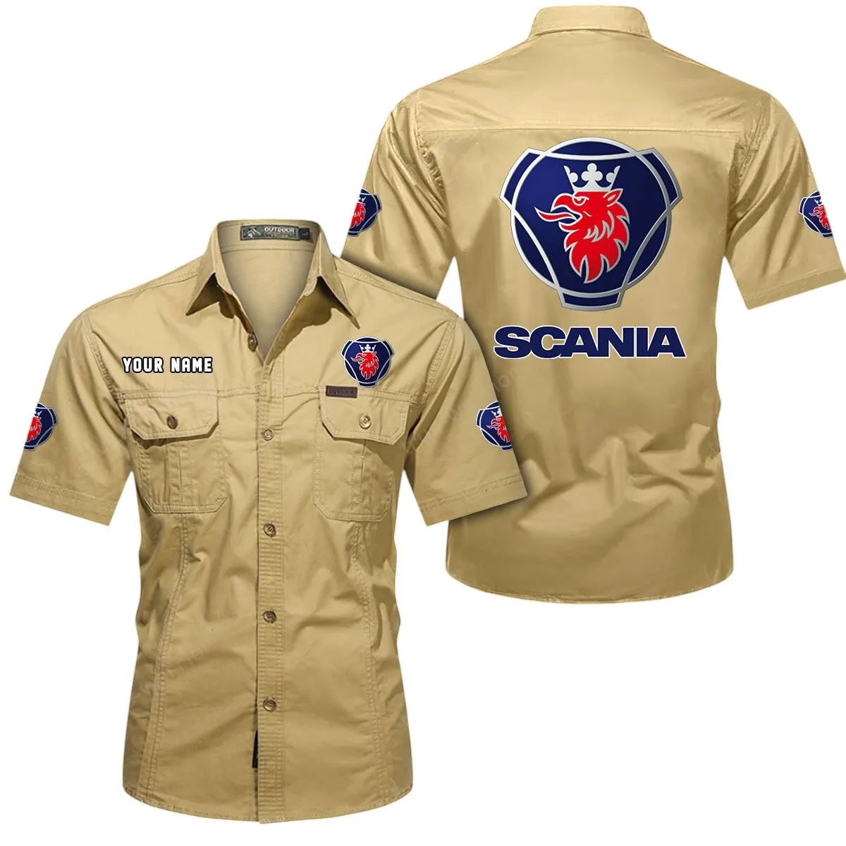 Scania Short Sleeved Shirt, All Over Print Button Shirt CAR444052625824 - Khaki
