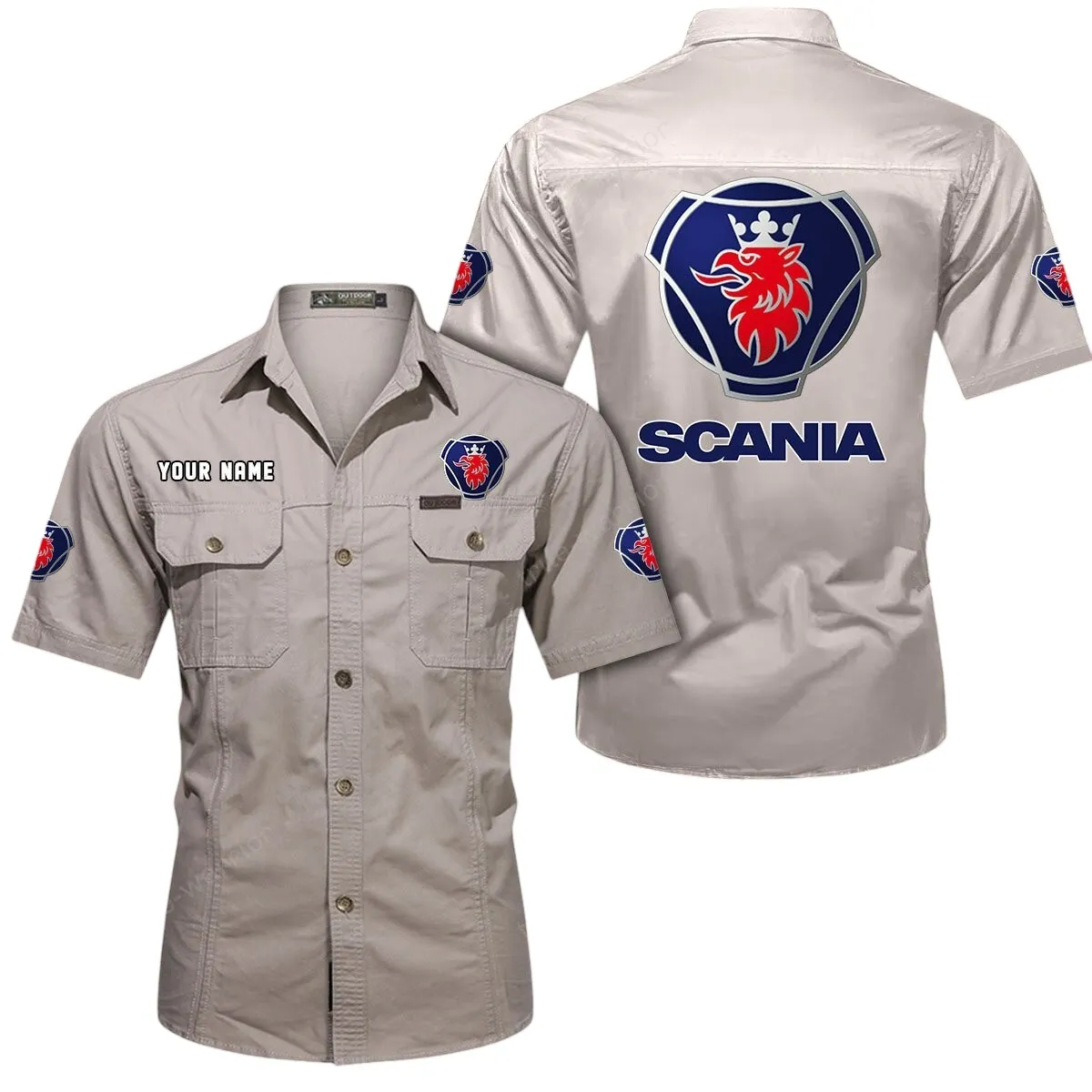 Scania Short Sleeved Shirt, All Over Print Button Shirt CAR444052625824 - Khaki