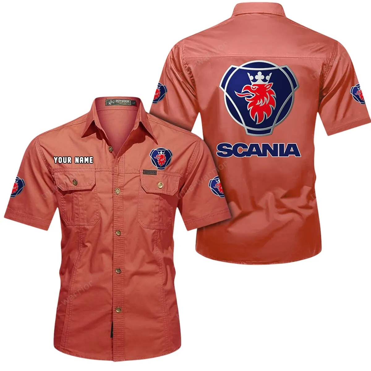 Scania Short Sleeved Shirt, All Over Print Button Shirt CAR444052625824 - Khaki