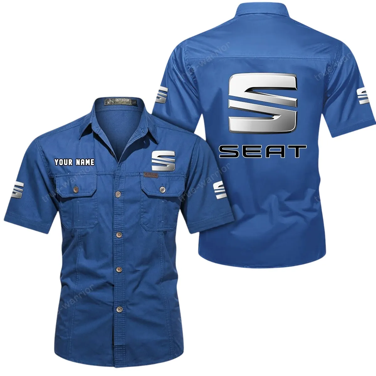 Seat Short Sleeved Shirt, All Over Print Button Shirt CAR444052625794 - Khaki