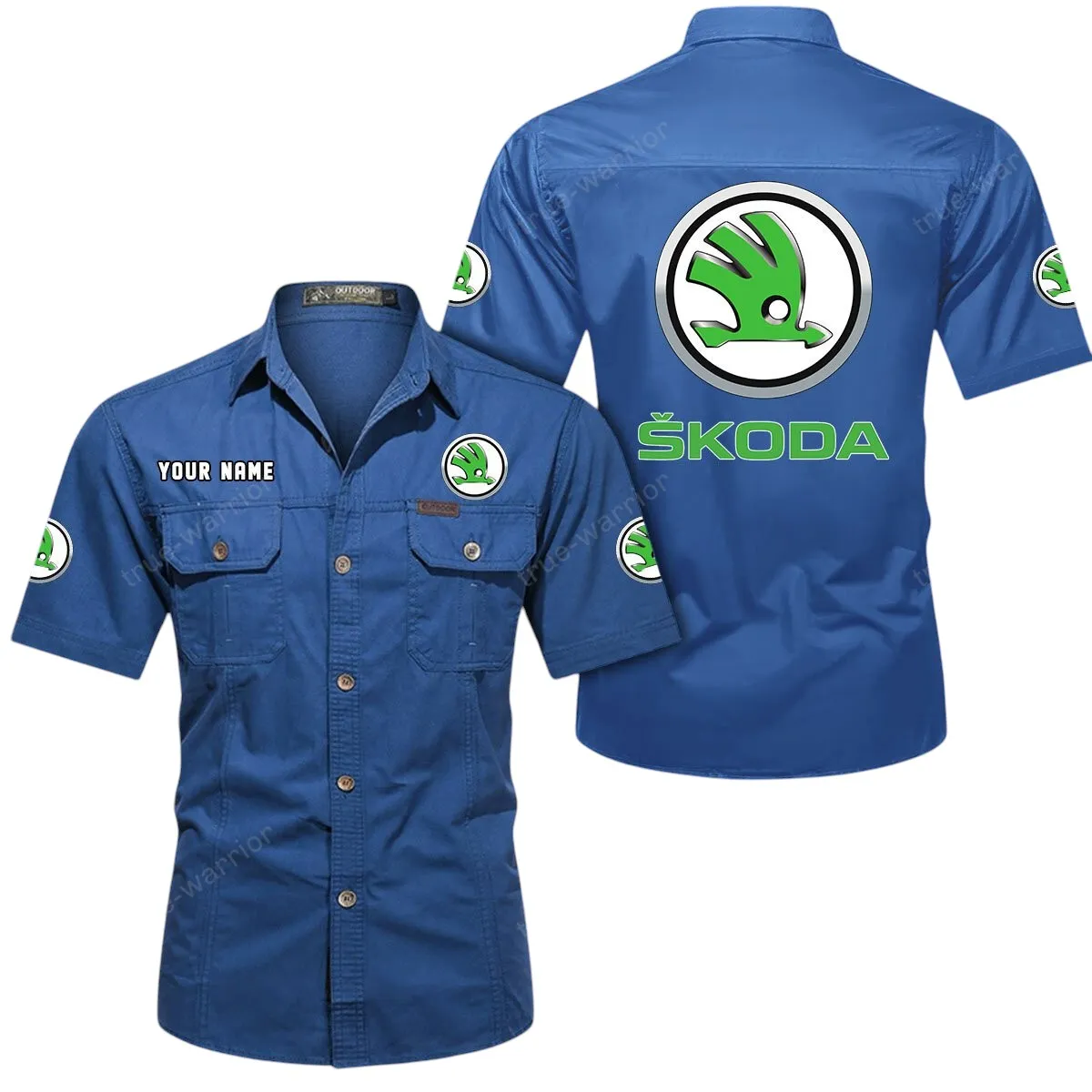 Skoda Auto Short Sleeved Shirt, All Over Print Button Shirt CAR444052625901 – Cowboy Blue