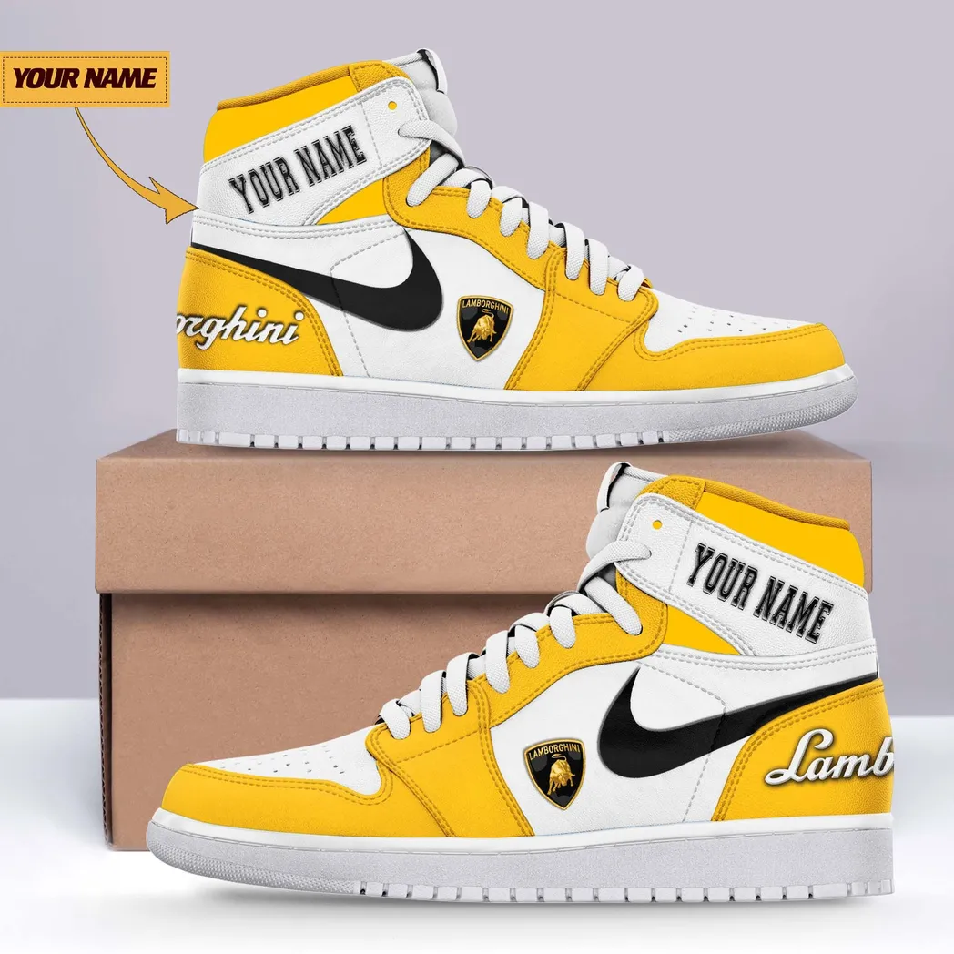Speed Car Enthusiasts Gift Air Jordan 1 High, Nike Sneaker All Over Print For Speed Car Owners, Custom Name CAR317032425686 – Yellow