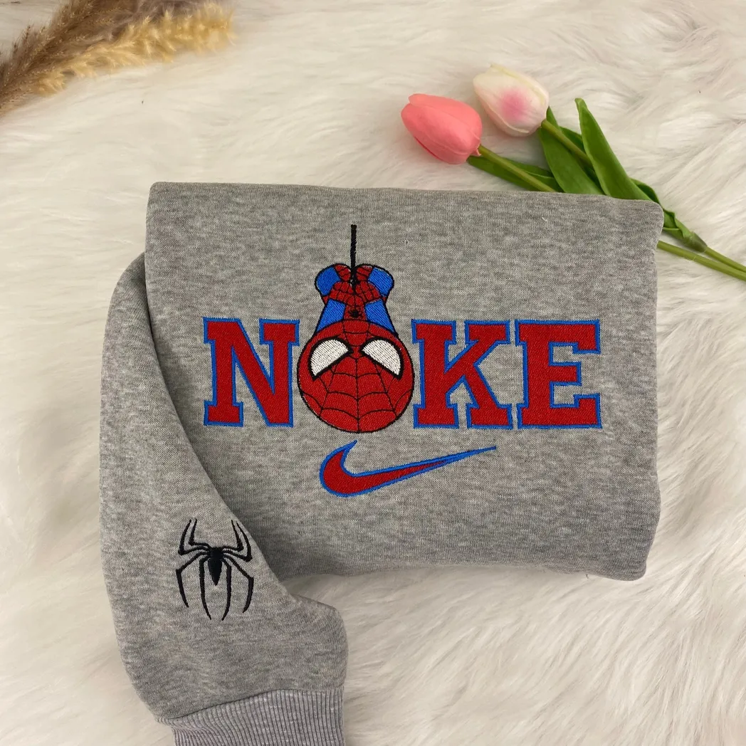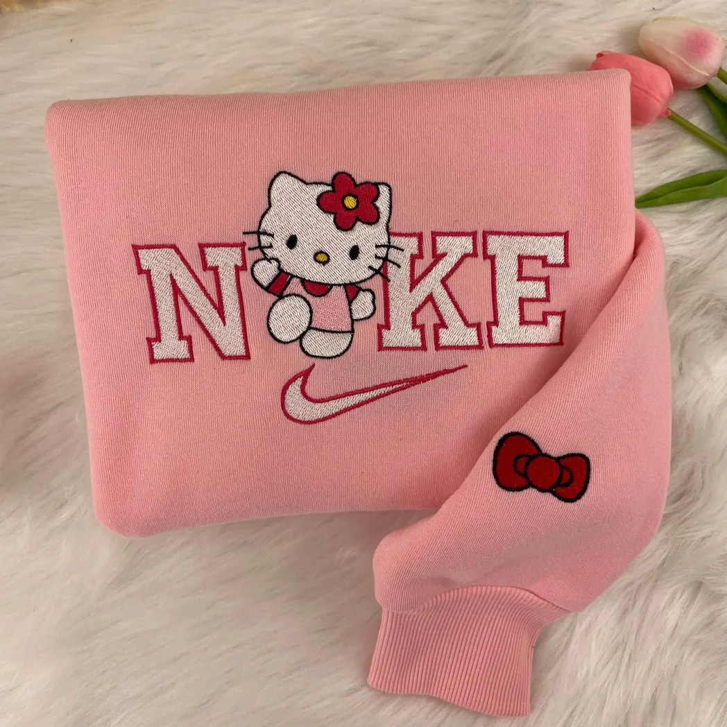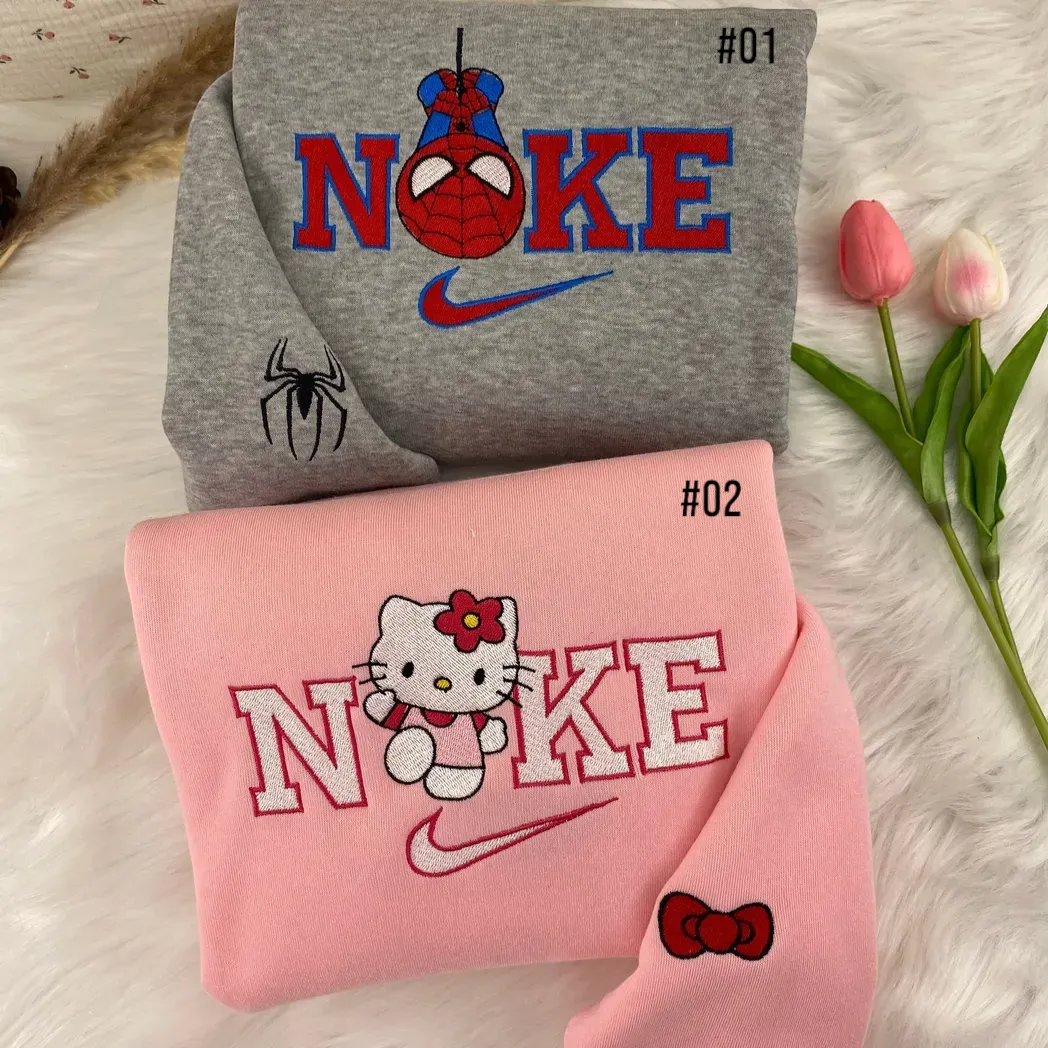 Spider-Man And Hello Kitty x Nike Embroidered Shirt, Embroidered Sweatshirt Fashion Style For Couples
