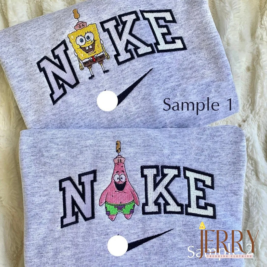 Spongebob And Patrick Nike x Nike Embroidered Sweatshirt Fashion Style For Couples, Valentines Gift For Him/Her