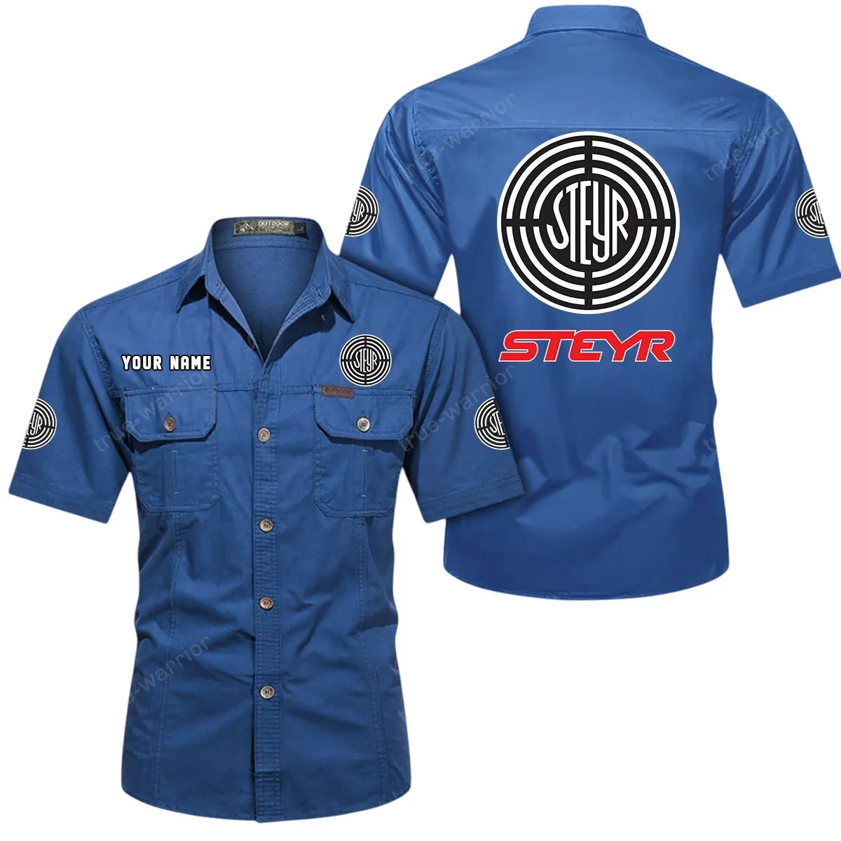 Steyr Short Sleeved Shirt, All Over Print Button Shirt CAR444052625899 – Cowboy Blue