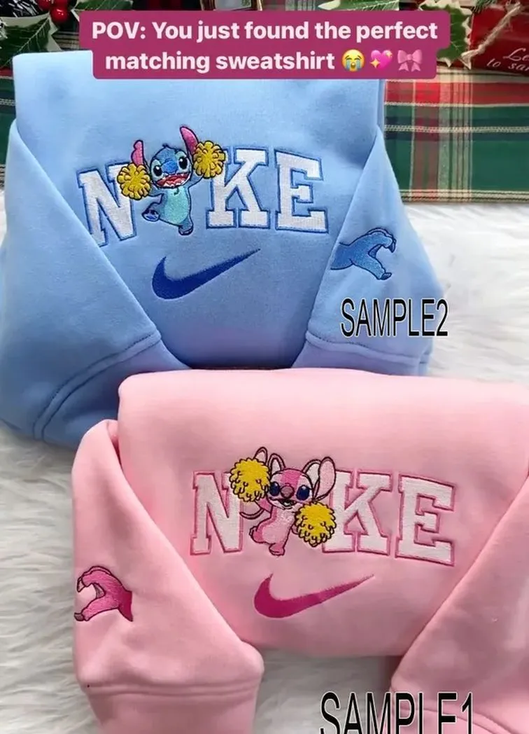 Stich And Angel x Nike Embroidered Sweatshirt Fashion Style For Couples, Valentines Gift For Him/Her