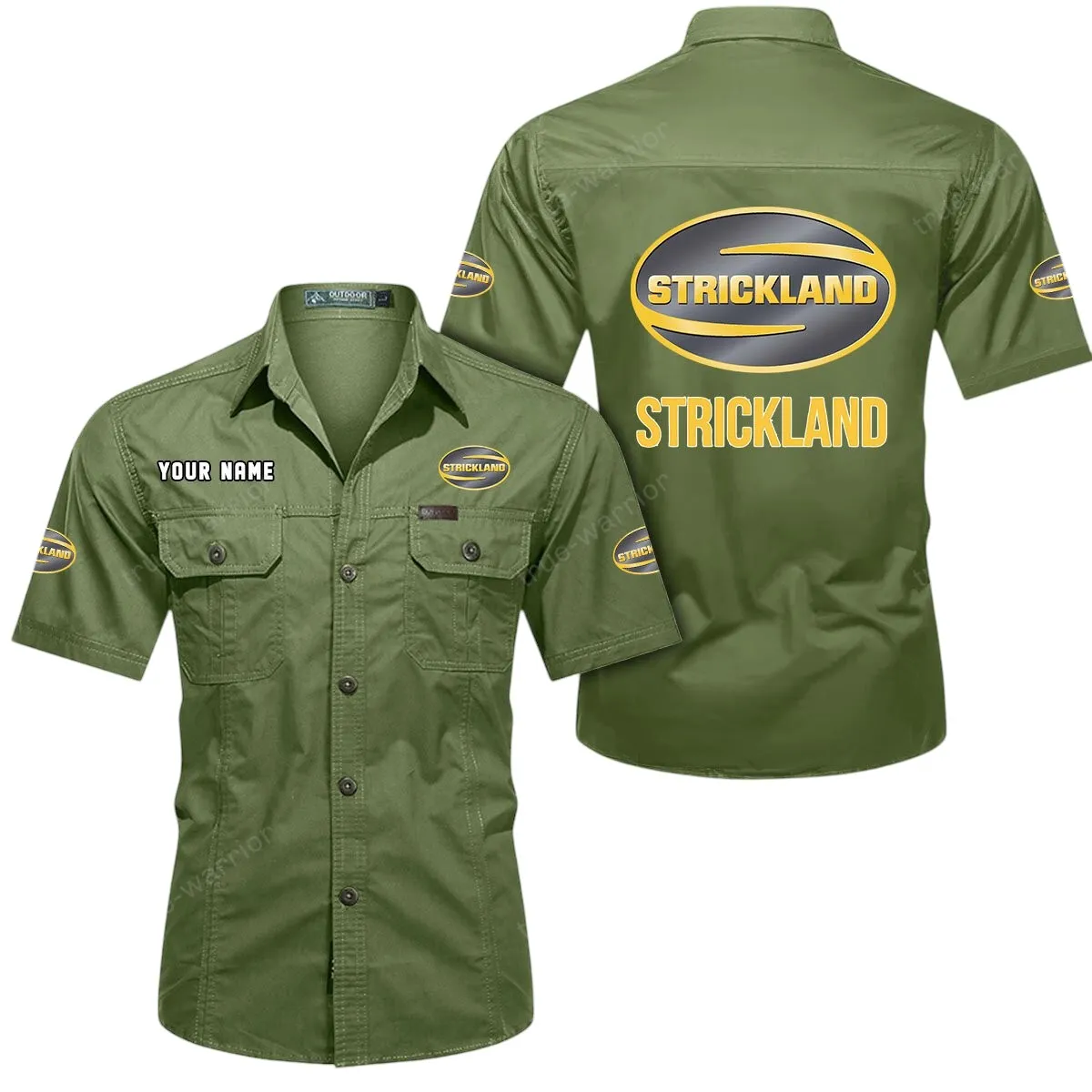 Strickland Short Sleeved Shirt, All Over Print Button Shirt CAR444052625939 - Army Green
