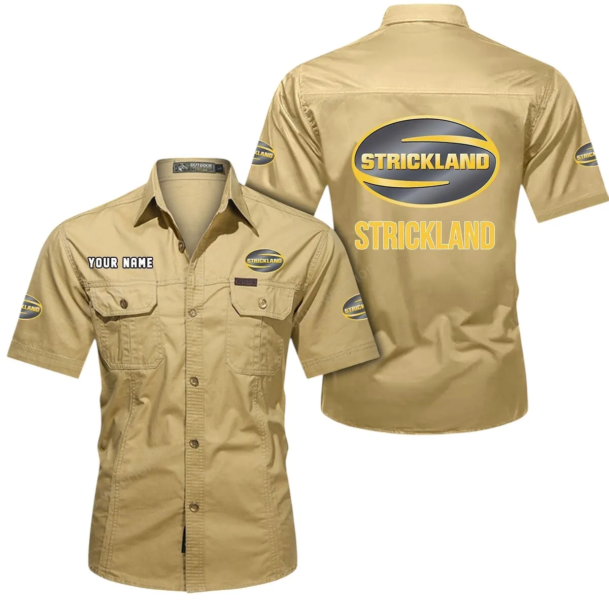 Strickland Short Sleeved Shirt, All Over Print Button Shirt CAR444052625939 – Khaki