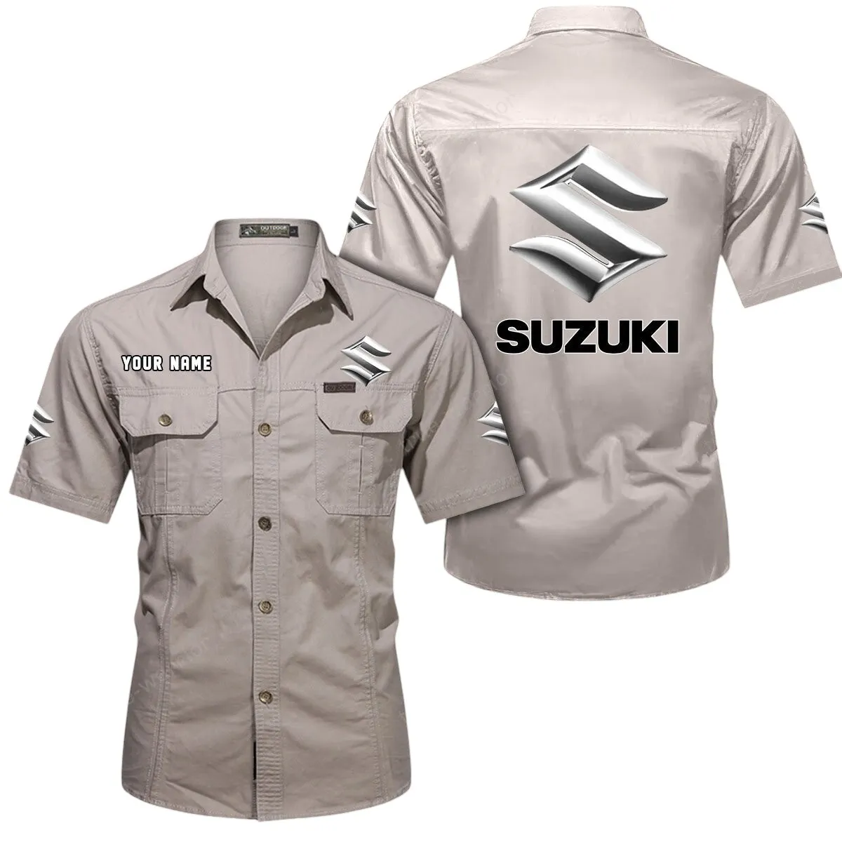Suzuki Short Sleeved Shirt, All Over Print Button Shirt CAR444052625832 - Khaki