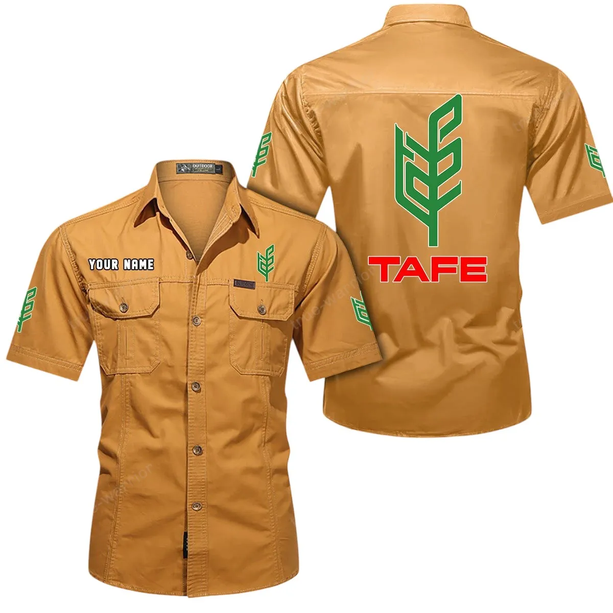 Tafe Short Sleeved Shirt, All Over Print Button Shirt CAR444052625911 - Khaki