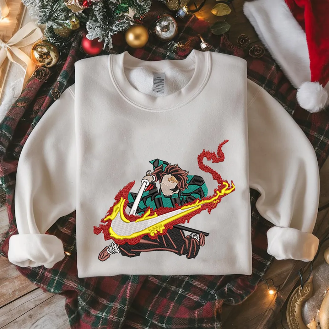 Tanjiro Demon Slayer Anime x Nike Embroidered Sweatshirt Fashion Style For Couples, Valentines Gift For Him/Her