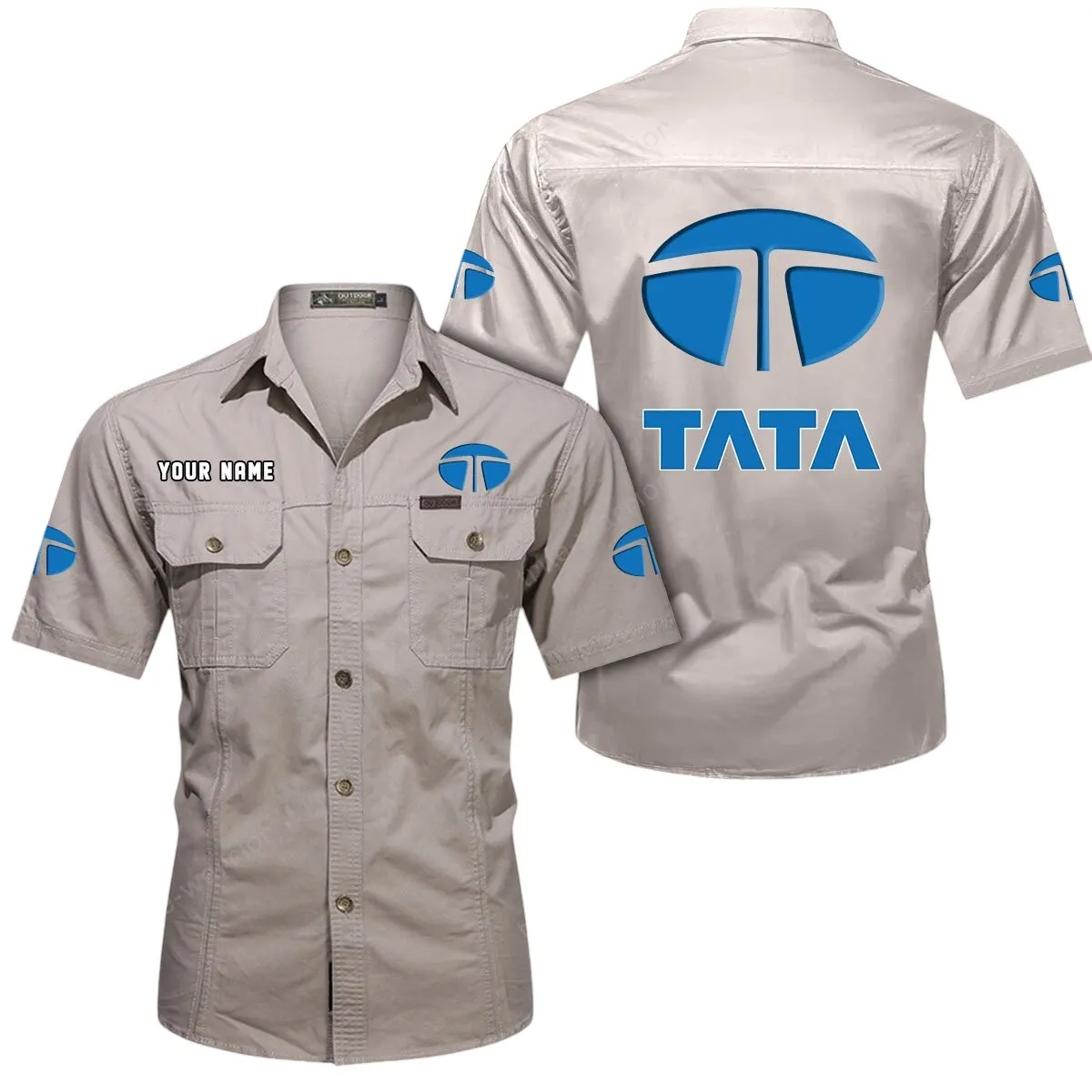 Tata Short Sleeved Shirt, All Over Print Button Shirt CAR444052625927 - Cowboy Blue