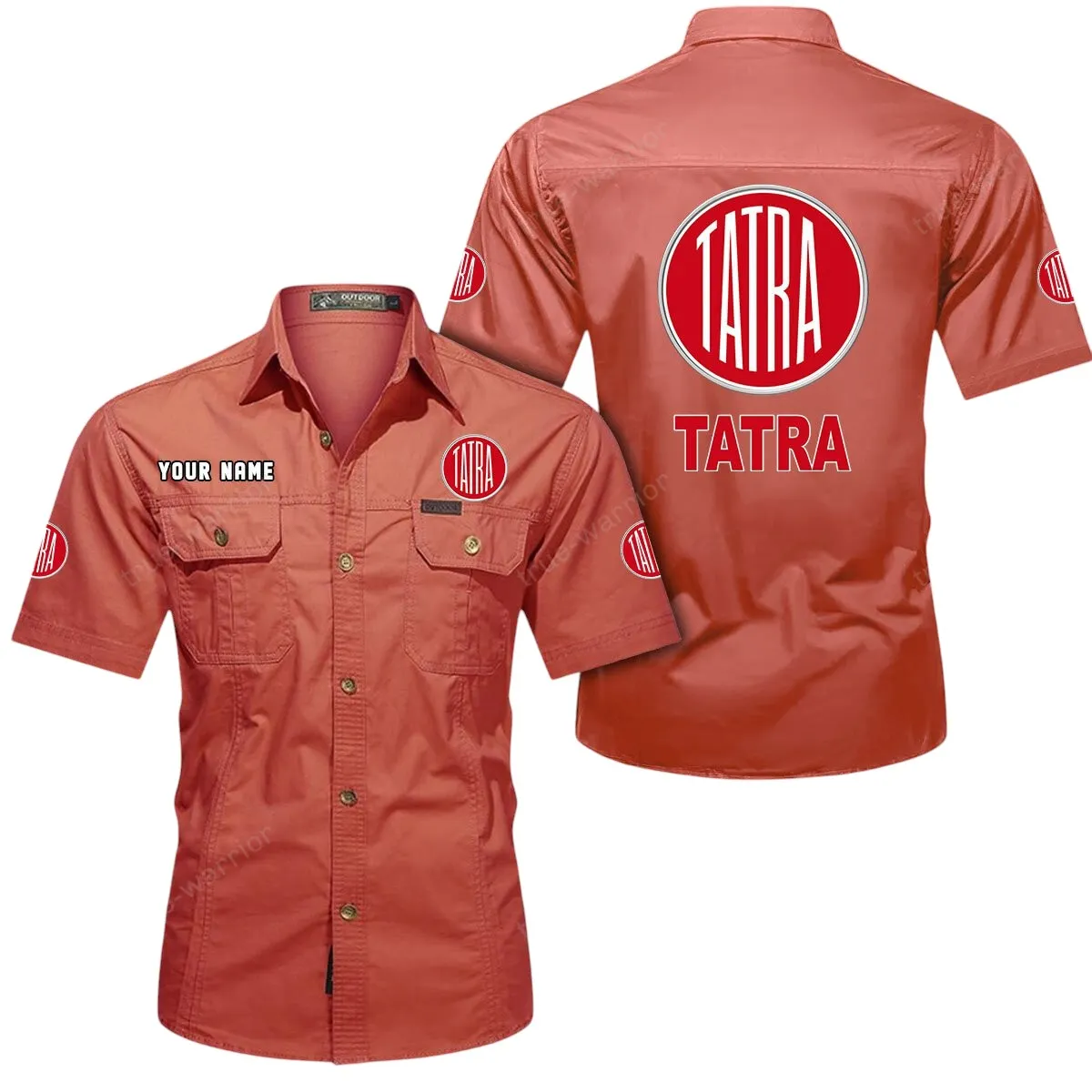 Tatra Short Sleeved Shirt, All Over Print Button Shirt CAR444052625878 - Khaki