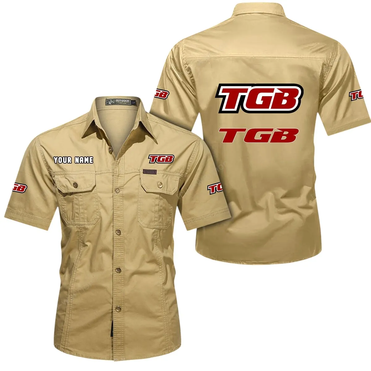 TGB Motorcyles Short Sleeved Shirt, All Over Print Button Shirt CAR444052625857 – Khaki