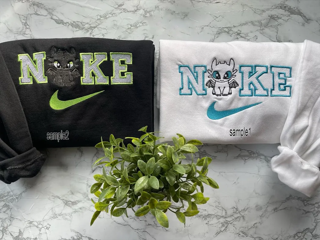 Toothless And Light Fury x Nike Embroidered Sweatshirt Fashion Style For Couples, Valentines Gift For Him/Her