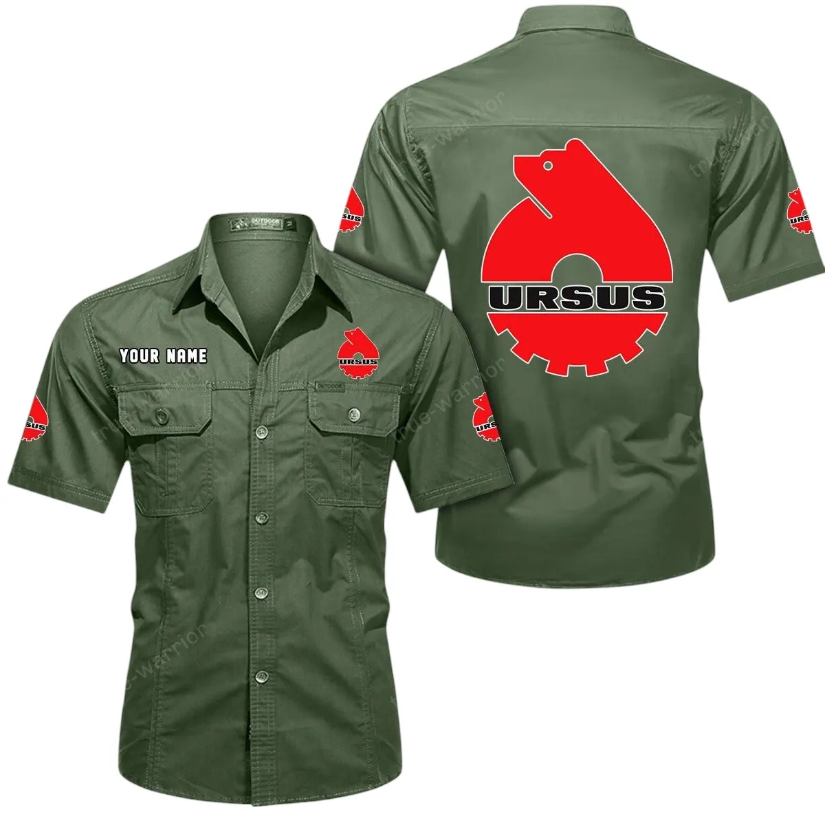 Ursus Short Sleeved Shirt, All Over Print Button Shirt CAR444052625928 – Army Green