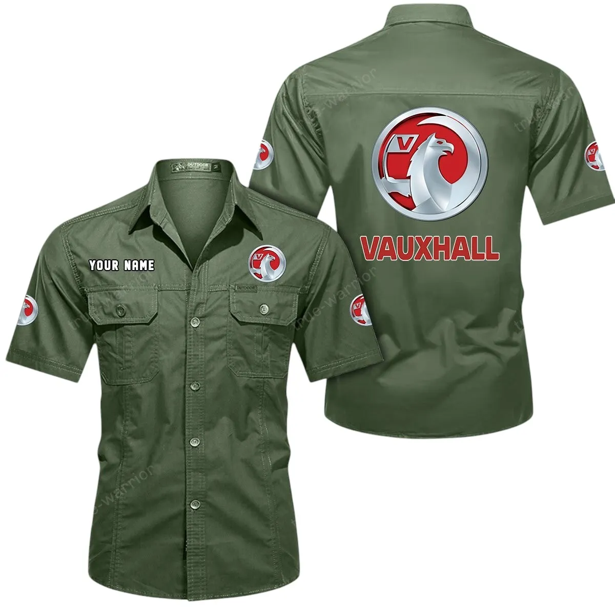 Vauxhall Short Sleeved Shirt, All Over Print Button Shirt CAR444052625930 – Army Green