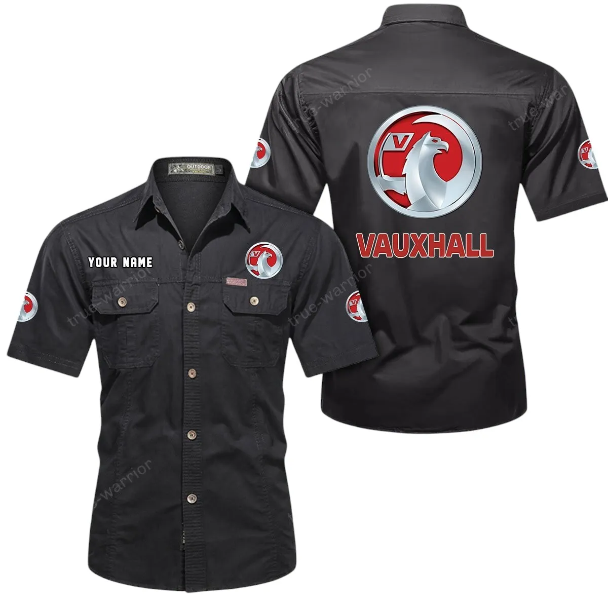 Vauxhall Short Sleeved Shirt, All Over Print Button Shirt CAR444052625930 – Black