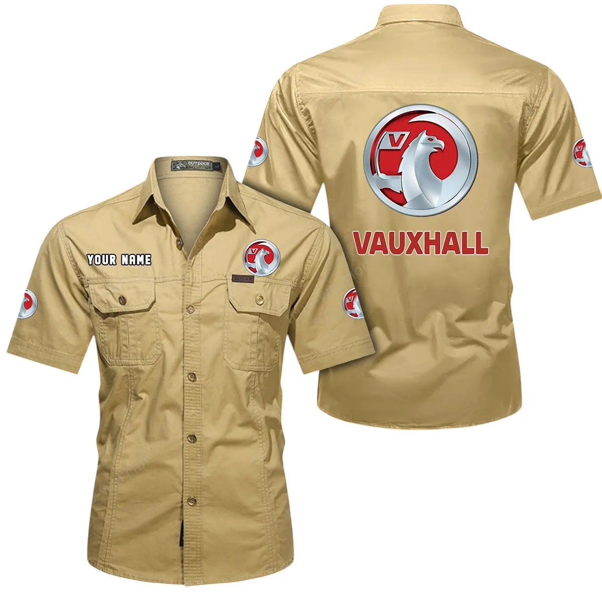 Vauxhall Short Sleeved Shirt, All Over Print Button Shirt CAR444052625930 – Khaki