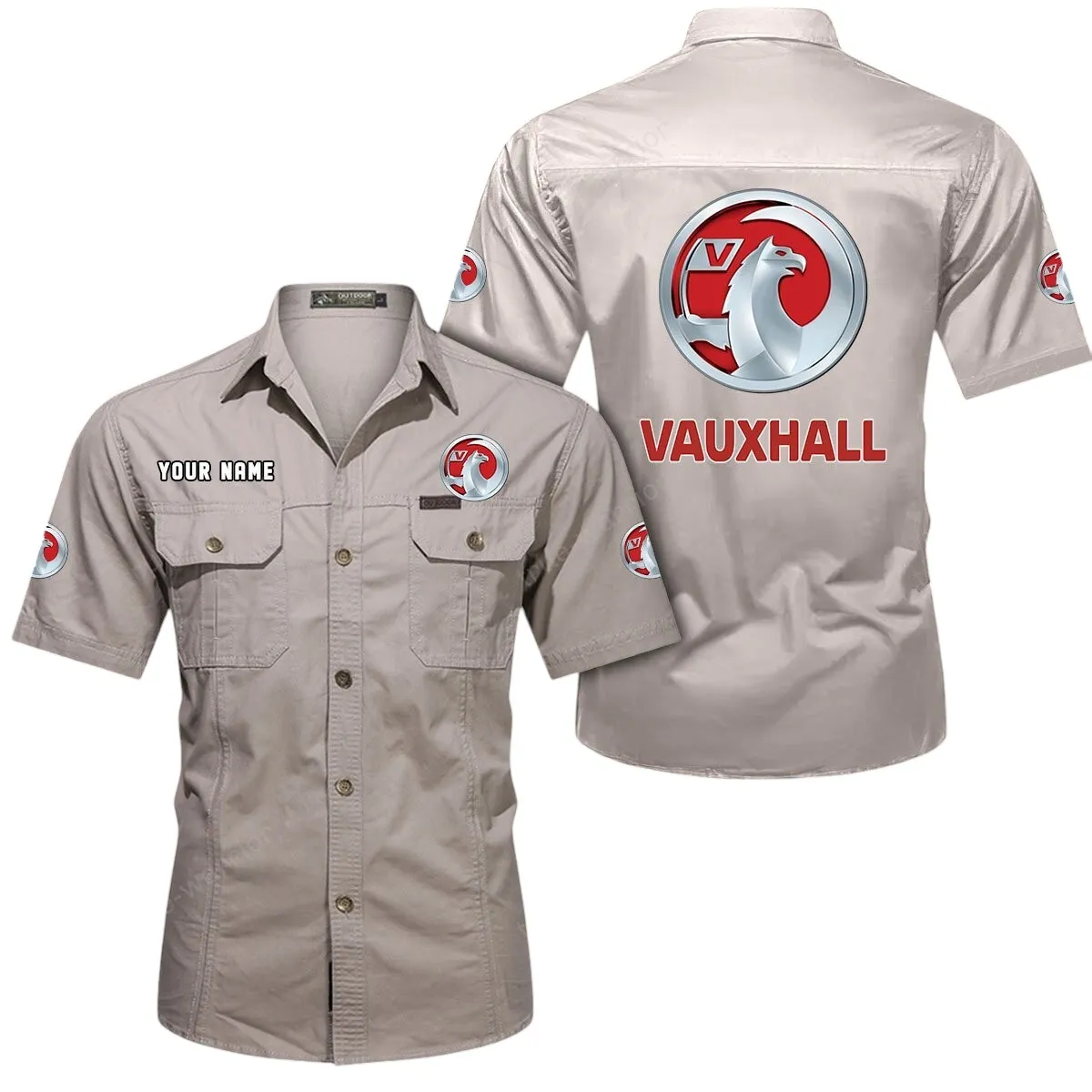 Vauxhall Short Sleeved Shirt, All Over Print Button Shirt CAR444052625930 – Beige