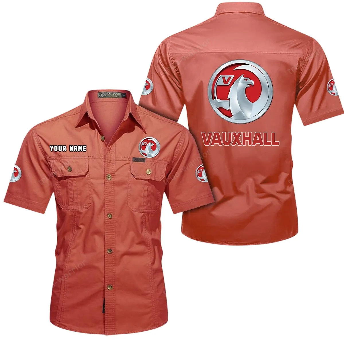 Vauxhall Short Sleeved Shirt, All Over Print Button Shirt CAR444052625930 - Khaki