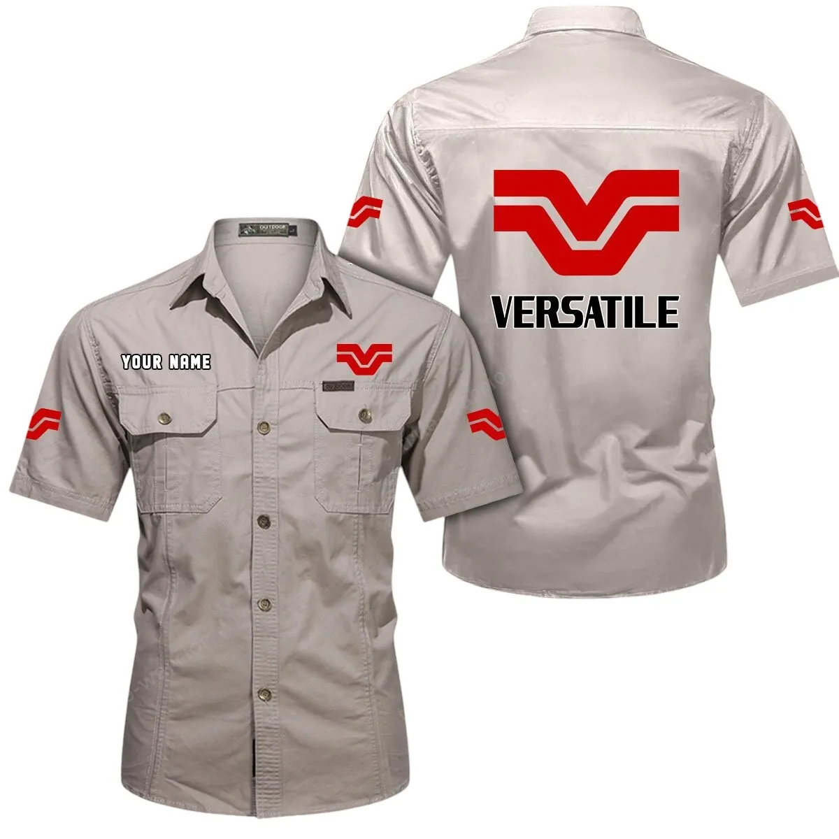 Versatile Short Sleeved Shirt, All Over Print Button Shirt CAR444052625942 – Beige
