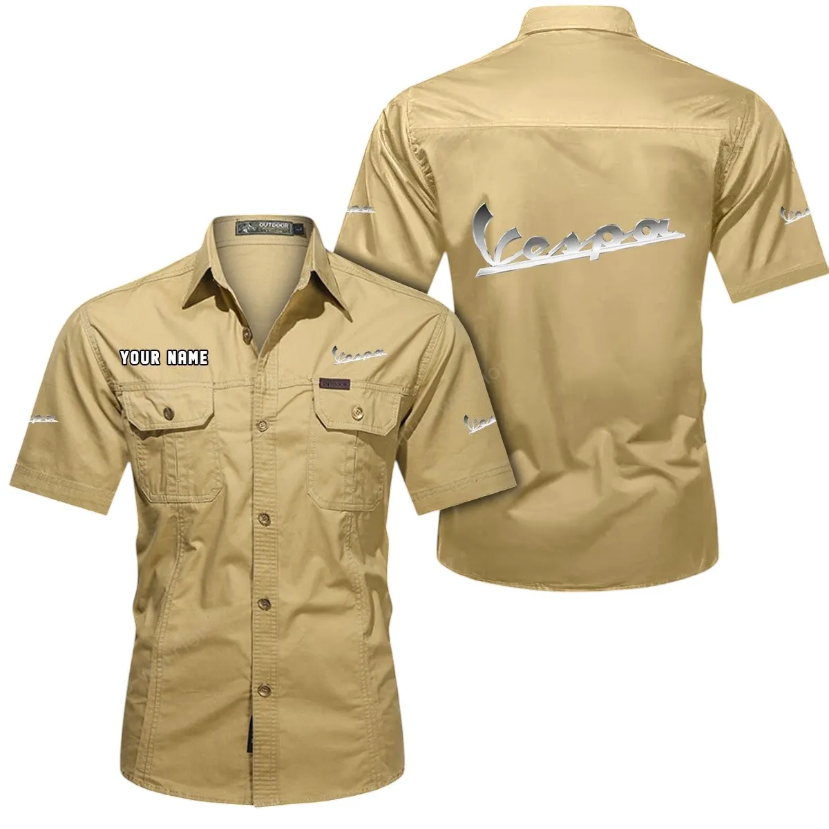 Vespa Short Sleeved Shirt, All Over Print Button Shirt CAR444052625854 – Khaki