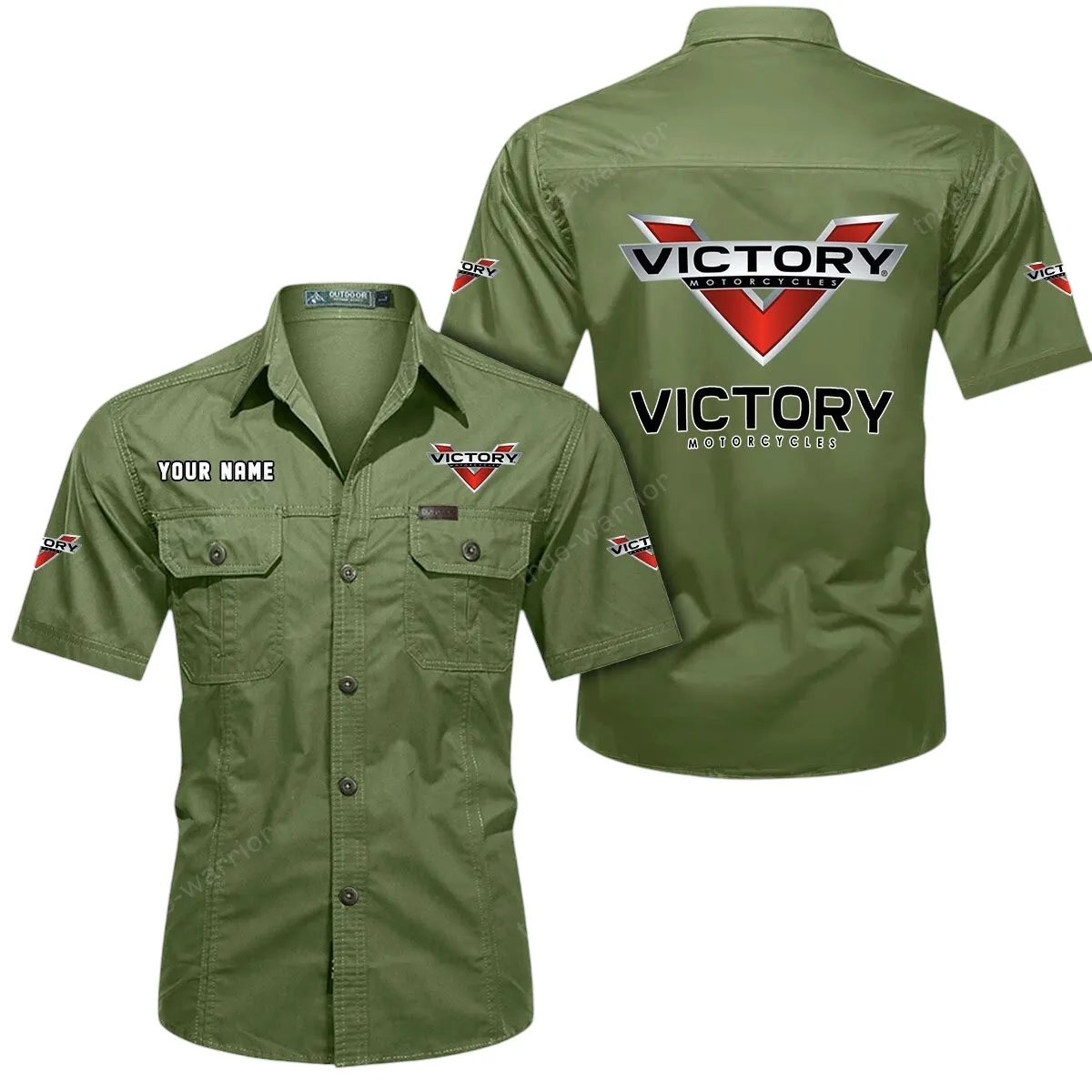 Victory Motorcycles Short Sleeved Shirt, All Over Print Button Shirt CAR444052625863 - Khaki