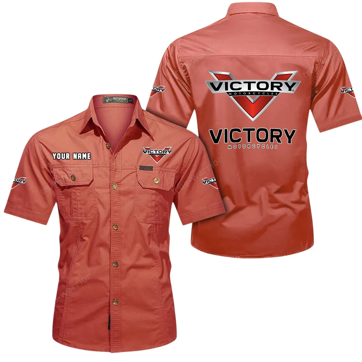 Victory Motorcycles Short Sleeved Shirt, All Over Print Button Shirt CAR444052625863 - Turmeric