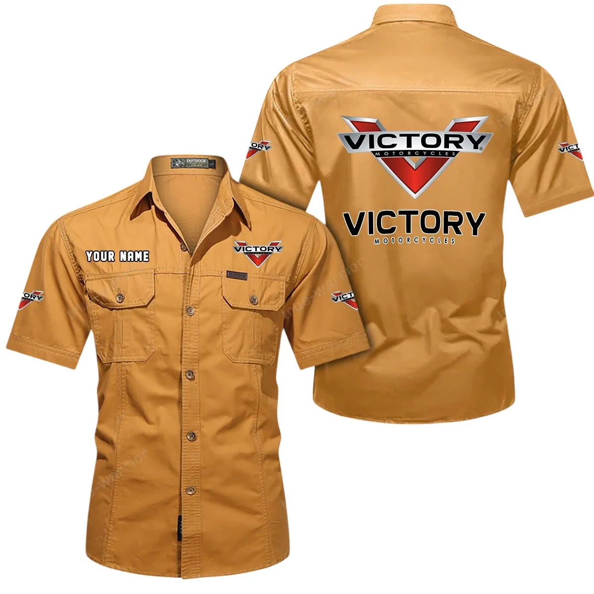 Victory Motorcycles Short Sleeved Shirt, All Over Print Button Shirt CAR444052625863 – Turmeric