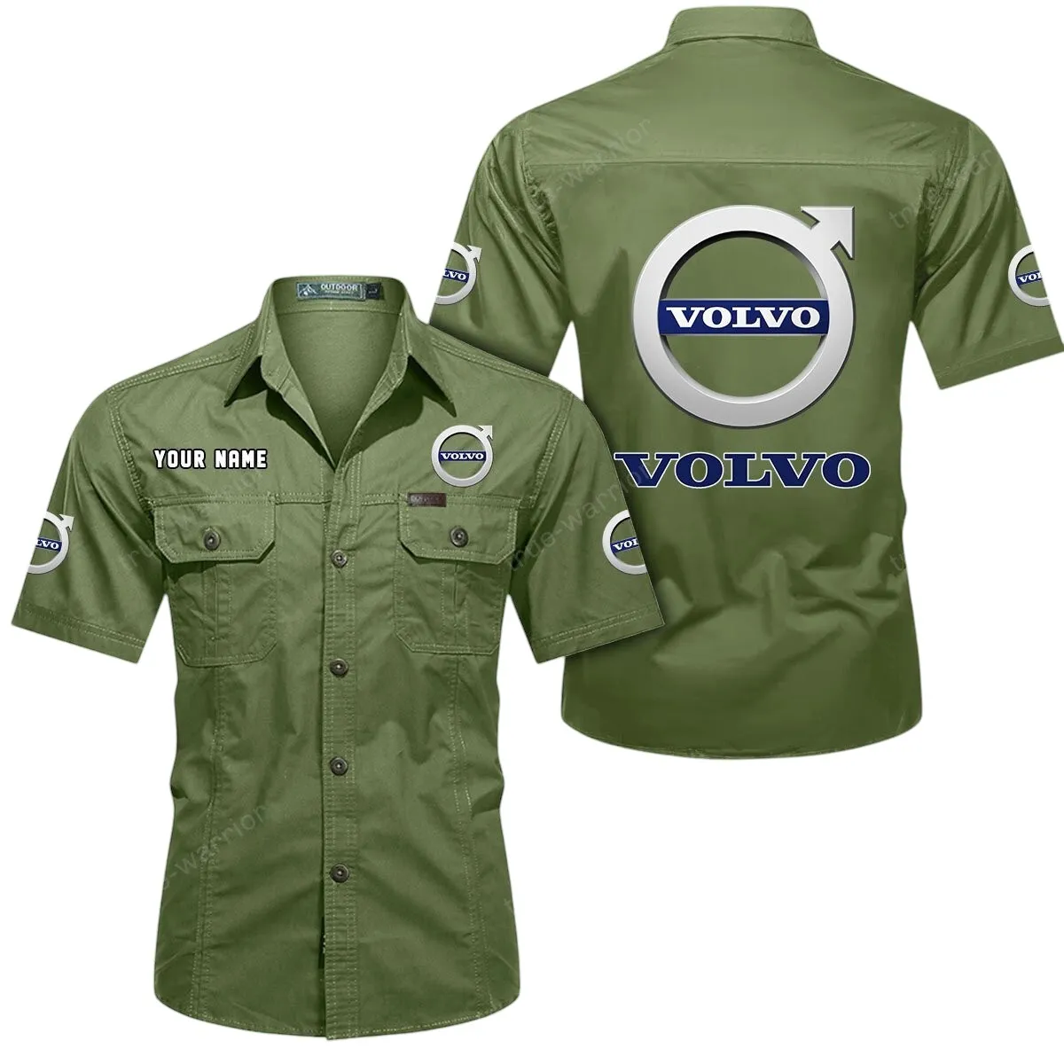 Volvo Short Sleeved Shirt, All Over Print Button Shirt CAR444052625777 - Army Green