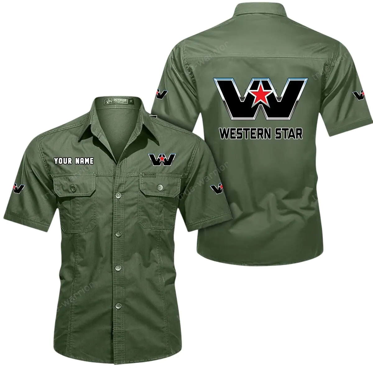 Western Star Short Sleeved Shirt, All Over Print Button Shirt CAR444052625890 – Army Green