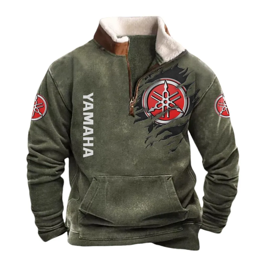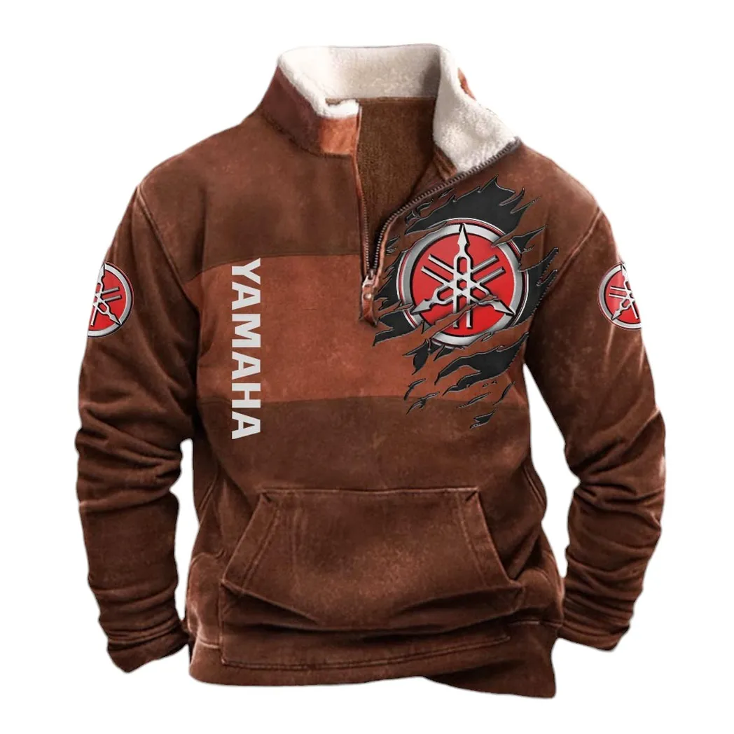 Yamaha Half Zip Fur Collar Hoodie CAR0926092090, All Over Print Half Zip Fur Collar Hoodie
