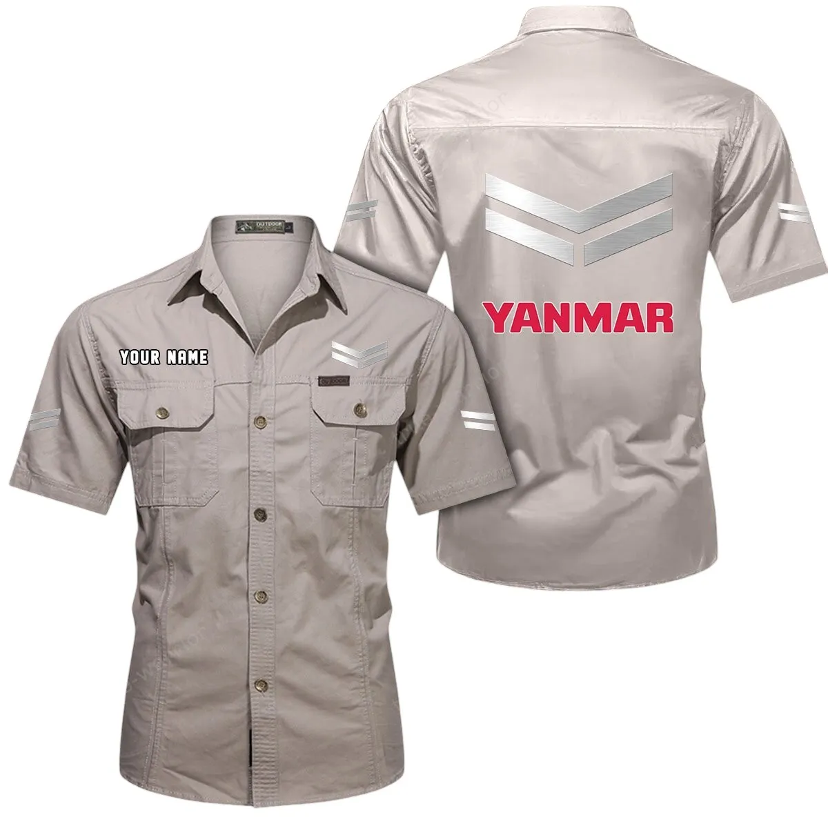 Yanmar Short Sleeved Shirt, All Over Print Button Shirt CAR444052625946 – Beige