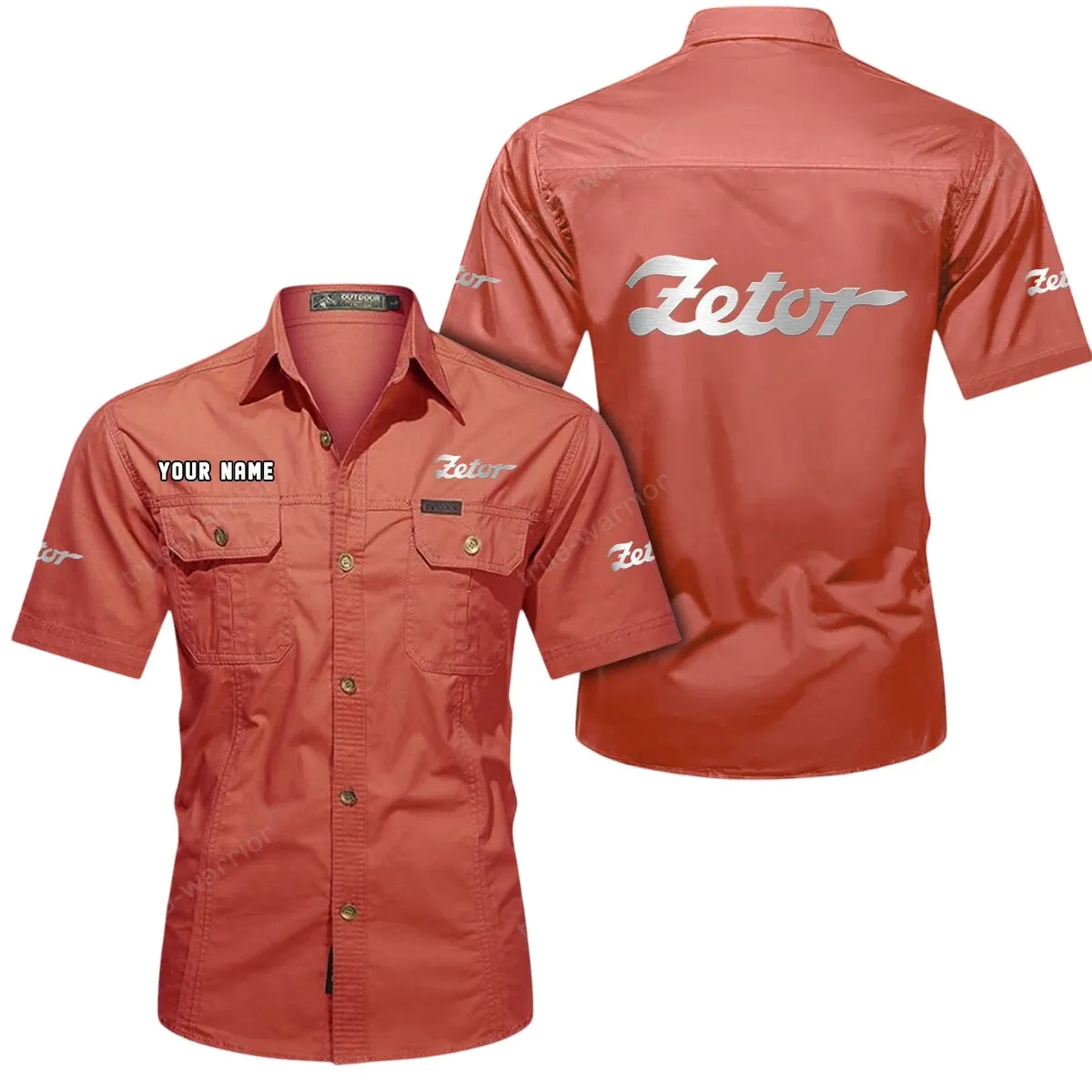 Zetor Short Sleeved Shirt, All Over Print Button Shirt CAR444052625895 - Beige