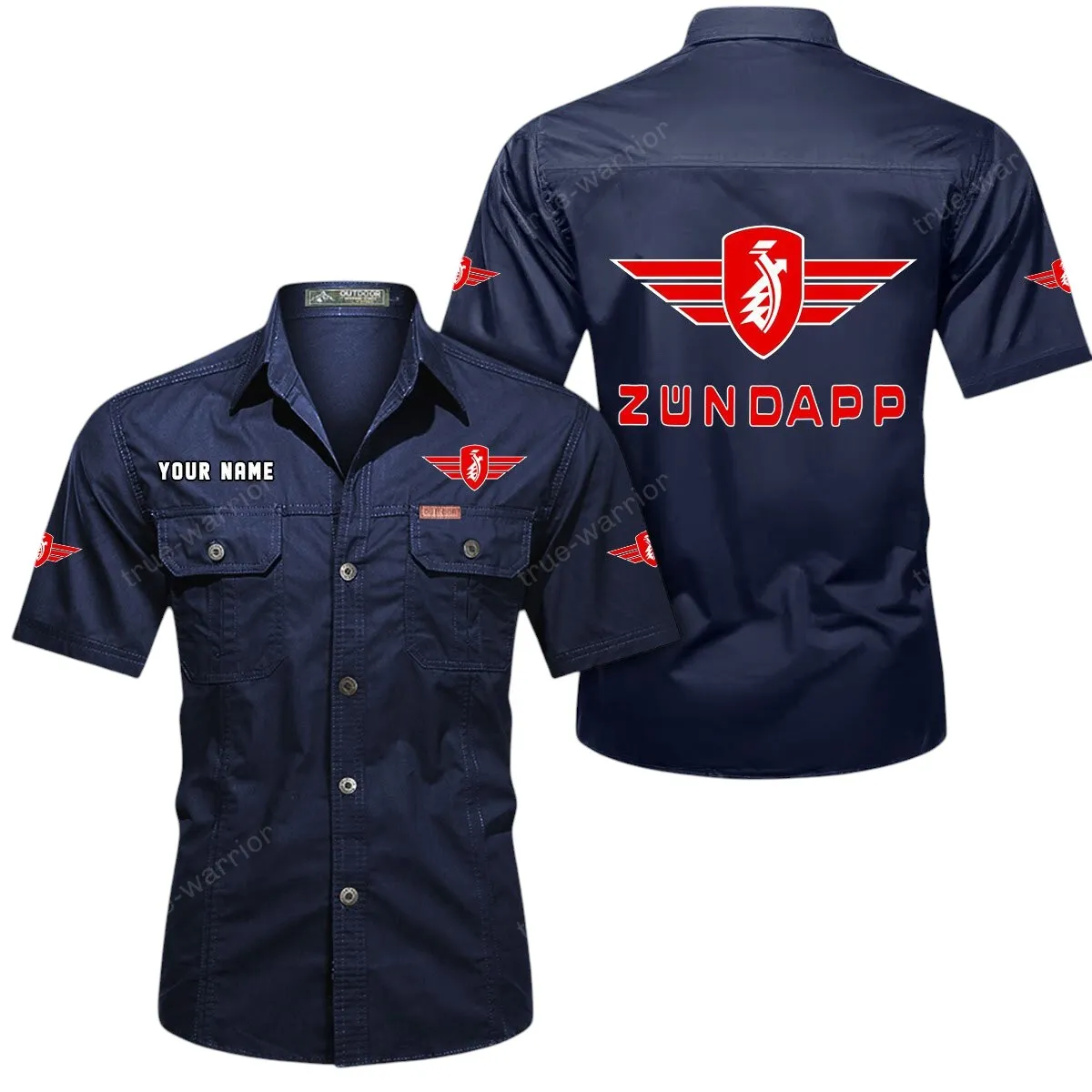 Zundapp Short Sleeved Shirt, All Over Print Button Shirt CAR444052625821 - Dark Blue