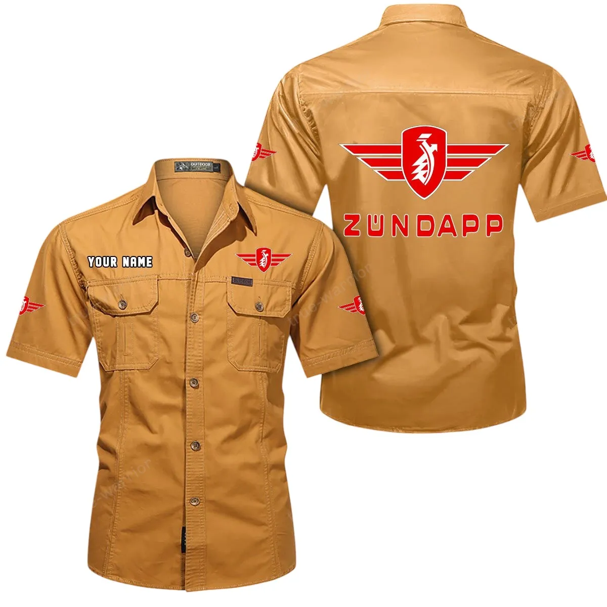 Zundapp Short Sleeved Shirt, All Over Print Button Shirt CAR444052625821 - Khaki